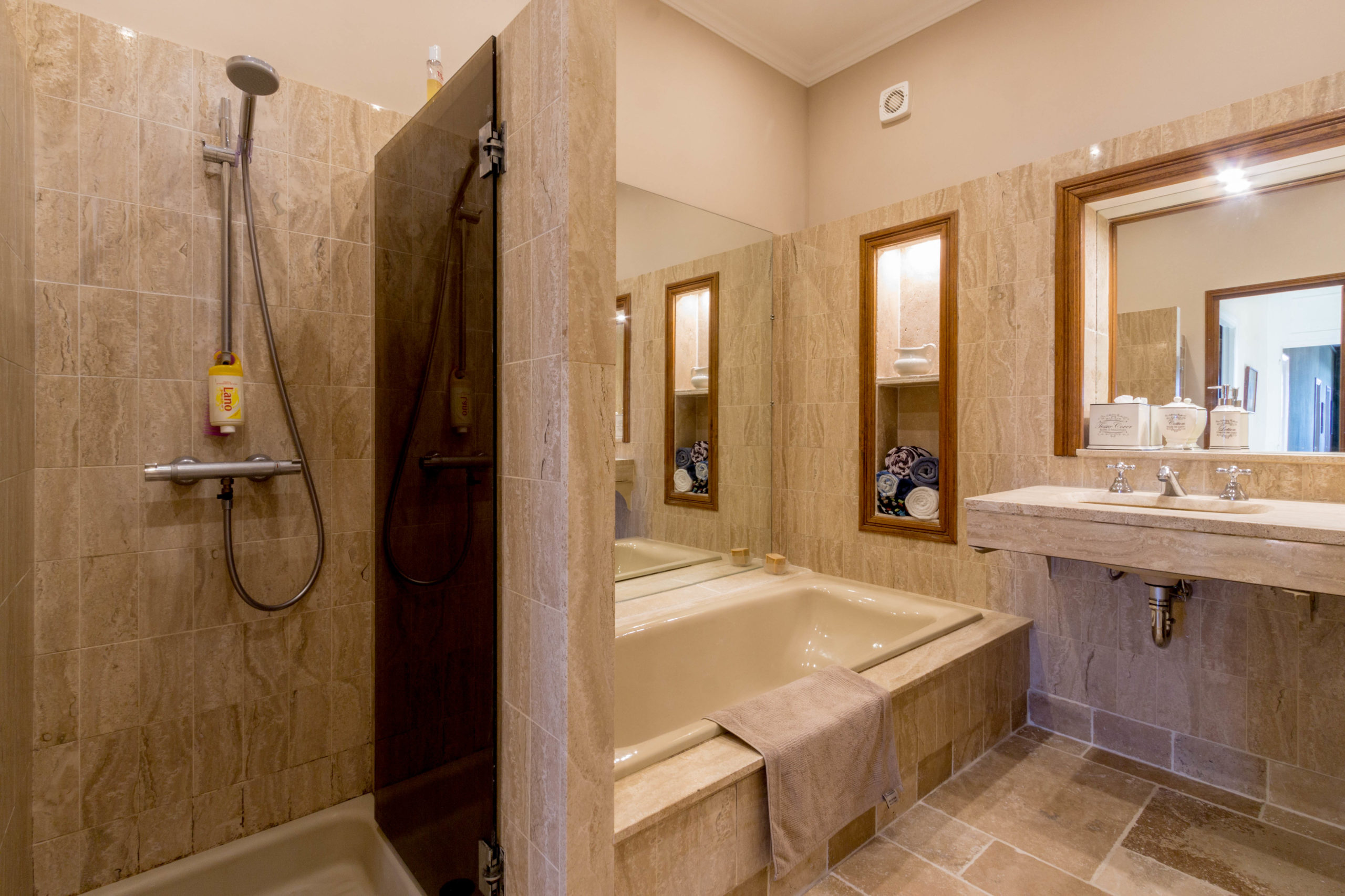 Gorgeous Bathroom, tiled in natural stone, remodeled in mid-2019